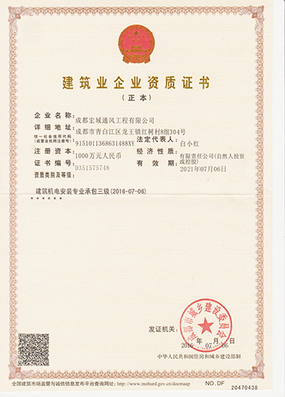 宏域通風建筑企業資質證書